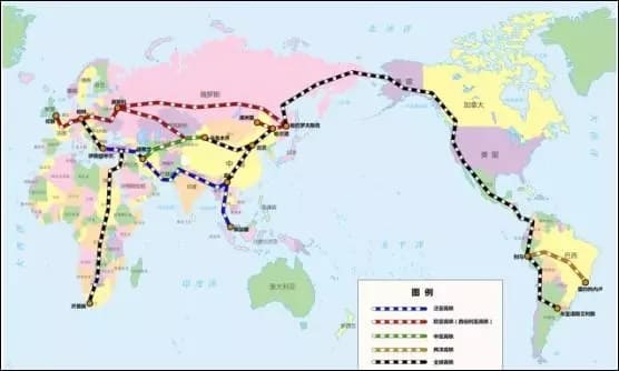 一是泛亚高铁。泛亚高铁从昆明出发,一条线路连接泰国、缅甸、孟加拉国、印度、巴基斯坦、伊朗、土耳其,另一条线路将从昆明经泰国至马来西亚和新加坡,泛亚高铁成为中国联通中南半岛、南亚和西亚的“黄金走廊”。二是中亚高铁,起点是乌鲁木齐,取道吉尔吉斯斯坦、乌兹别克斯坦、伊朗、土耳其等中亚国家,经过伊朗再到土耳其,最后抵达德国,将把“陆上丝绸之路”中的17个国家连接起来。三是欧亚高铁,从伦敦出发,经巴黎、柏林、华沙、基辅,过莫斯科后分成两支,一支入哈萨克斯坦,另一支遥指远东的哈巴罗夫斯克,之后进入中国境内的满洲里。四是西伯利亚高铁,即横跨俄罗斯的贝加尔—阿穆尔大铁路的现代化改造。五是“两洋高铁”,这是由我国、巴西、秘鲁三国联合开展的高铁建设项目,“两洋铁路”跨越巴西秘鲁,连接大西洋和太平洋,全长达5300公里。六是“环球高铁”,该路线包括欧亚北线、欧亚南线、东南亚线、美洲线及非洲线五条线,联通除大洋洲外的全球各大洲。以上高铁计划尽管有的刚刚开工建设,有的还在设计阶段,但已经清楚表明了高铁这一新型运输方式的发展趋势。