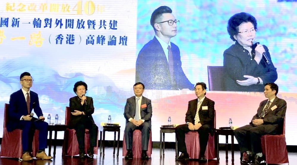为纪念改革开放40周年,由丝路规划研究中心、紫荆杂志社、香港侨界社团联会、香港中国商会共同举办的「中国新一轮对外开放暨共建『「一带一路」』(香港)高峰论坛」11月1日在香港君悦酒店宴会厅举行。论坛晚宴上邀请了中国国际经济交流中心陈文玲总经济师、镜报总编辑盛一平、经济导报总编辑颜安生、集友银行行政总裁郑威等期刊传媒高层与经济学家对谈分享。
