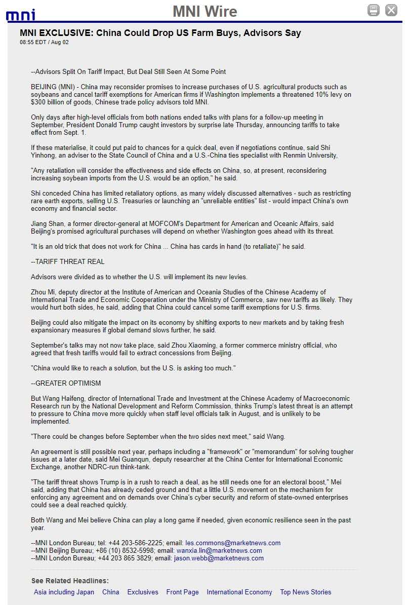 China could drop US farm buys
