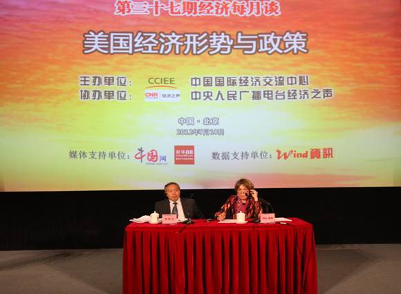 2012年7月18日上午,国经中心在北京中华世纪坛数字艺术馆3号厅举办第三十七期“经济每月谈”活动。本期主题为“美国经济形势与政策”,国经中心邀请美国加州大学伯克利分校经济学教授劳拉·泰森(Laura Tyson)女士作了专题演讲,国经中心常务副理事长郑新立主持了本次活动。