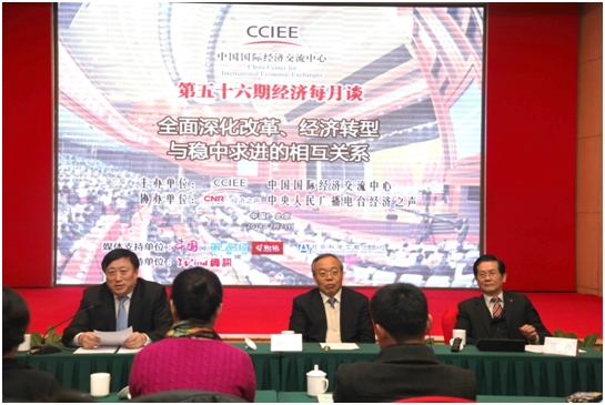 2014年2月21日上午,国经中心在北京梅地亚中心举办第五十六期“经济每月谈”活动,主题为:“全面深化改革、经济转型与稳中求进的相互关系”,中国国际经济交流中心秘书长张大卫主持了本次活动。