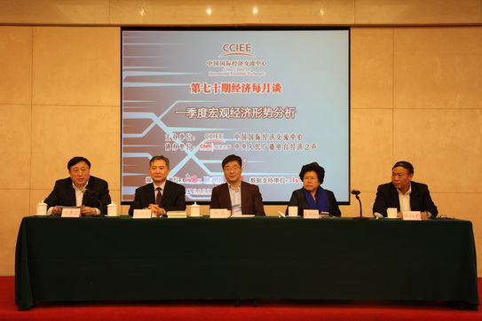 2015年4月15日下午,中国国际经济交流中心在中国职工之家C座三层报告厅召开第70期 “经济每月谈”,主题为:一季度宏观经济形势分析。中国国际经济交流中心副理事长、秘书长张大卫主持了本次活动。北京大学常务副校长、教授刘伟,国家信息中心首席经济师范剑平,中国国际经济交流中心总经济师陈文玲,中国国际经济交流中心经济研究部部长徐洪才分别发表演讲。