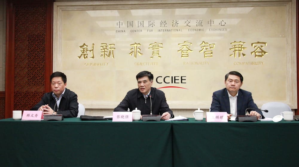 2018年3月22日,中国国际经济交流中心举办第105期“经济每月谈”,会议主题为“政府工作报告解读”。会议由中国国际经济交流中心常务副理事长、执行局主任张晓强主持。国务院研究室副主任韩文秀,国务院参事、中国与全球化智库理事长王辉耀发表演讲。