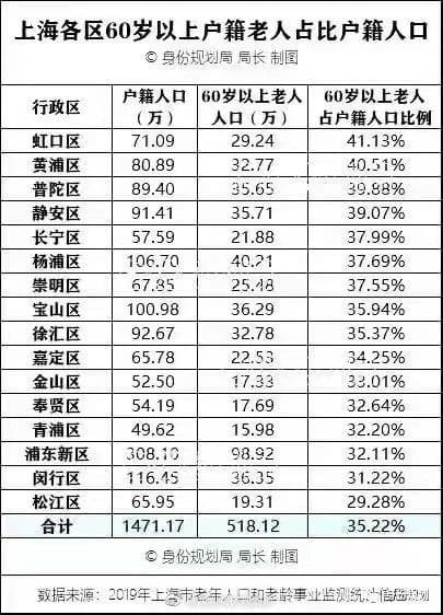 图 7 上海人口老龄化分区域数据