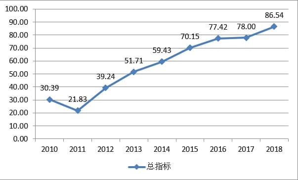 图1 中国可持续发展指数总指标走势(2010-2018)