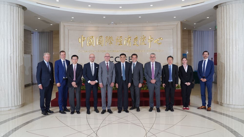 国经中心副总经济师、国经咨询有限公司总经理韩易虎,国际交流合作部部长许朝友、副部长孙葵,美欧研究部副部长张茉楠、欧盟研究室副主任谈俊;德国工商大会行政副总裁沃尔克·特雷尔、杜塞尔多夫工商会主席安德烈亚斯·施密茨、柏林工商会主席塞巴斯蒂安·斯蒂策尔、莱茵-内卡工商会副主席林约耿和德国工商大会北京代表处首席代表晏思等陪同会见。